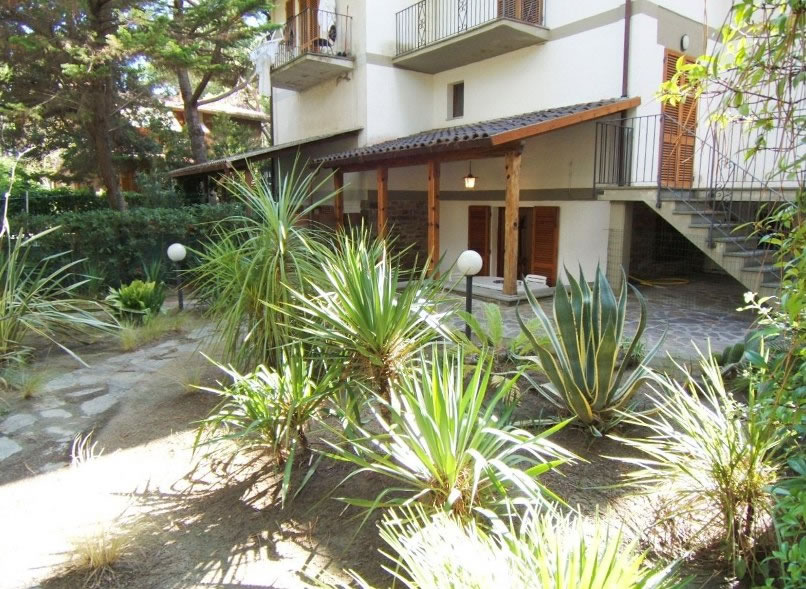 Diese Wohnung in der Tiefpaterre ist sehr gemütlich und bietet viel Privatsphäre an. Sie liegt hinter dem Haus des Besitzers (Er verbringt hier manchmal das Wochenende in der Zeit von Mai bis September) und ist durch den Gartenweg erreichbar, der auch zum Besitzerhaus führt. La Conchiglia ist vom Besitzerhaus durch einen Zaun getrennt (also ideal für jemanden, der mit seinem Hund in Urlaub kommen möchte). Der Garten ist von den typischen Pinien dieser Gegend der Maremma beschattet und verfügt über eine sehr praktische Duschenkabine, die man bei der Heimkehr nach einem ganzen Tag am Strand benutzen kann. Zur überdachten Sitzterrasse geht es einige Stufen hinunter. Ein Fensterladen und eine Fenstertür trennen die Terrasse von der Küche. Auf der gleichen Höhe der gut ausgestatteten Küche (auch Sofa, Spülmaschine und Sat-TV) geht es zum Duschbad, zum Zweibettzimmer und zum Doppelbettzimmer. Wenige Schritte vom Haus entfern befindet sich ein Abstellraum mit Waschmaschine und gemauertem Grill. „La Conchiglia“ ist die ideale Wohnung entweder für eine Familie mit zwei Kindern oder für zwei befreundete Paare, die den Sommer am Meer aber auch zugleich in aller Ruhe verbringen wollen. Das Meer ist auch zu Fuß erreichbar: es ist ungefähr 750 m entfernt!!