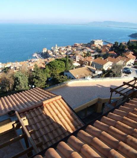 Il Sole ist eine135 qm große Wohnung einer eleganten Anlage auf einem der Hügel von Porto S.Stefano gelegen. Die Aussicht ist atemberaubend. Der Ausblick von den zwei Terrassen erstreckt sich von der spanischen Festung bis zur Kirche von S.Stefano, von der Piazza der Rioni bis zu den Jachten im Hafen, von Orbetellos Lagune bis zu Gainnellas und Feniglias Sanddünen, von Talamone bis zum Naturpark „ Parco dell’uccellina“. Auch von den Fenstern der Garage, in der man das Auto parken kann, genießt man diesen Ausblick… Die Garage liegt 15-20 m unterhalb der Wohnung, die aber dank einer kurzen Standseilbahn (auch mit toller Aussicht) ohne große Mühe erreichbar ist. Sie hat drei Stockwerke: In dem Geschoss der Haustür befinden sich ein großes Wohnzimmer mit Tisch, Stühlen und Sofa, eine kleine Terrasse mit Waschmaschine und Waschbecken, ein WC und eine Küche mit Herd, Spülmaschine, Kühlschrank und Tiefkühlschrank. Aus dem Wohnzimmer kommt man auf die große überdachte Terrasse mit Tisch und Stühlen. Eine Marmortreppe führt von hier herauf oder hinunter. Unten befinden sich ein Wohnzimmer mit Doppelbettsofa und ein Bad mit Dusche. Oben sind ein Doppelbettzimmer, ein Bad mit Dusche und ein Dreibettzimmer, aus dem man zu einer kleinen Terrasse mit Ausblick kommt. Ein Hund ist willkommen, aber er darf nie alleine zu Hause gelassen werden.
