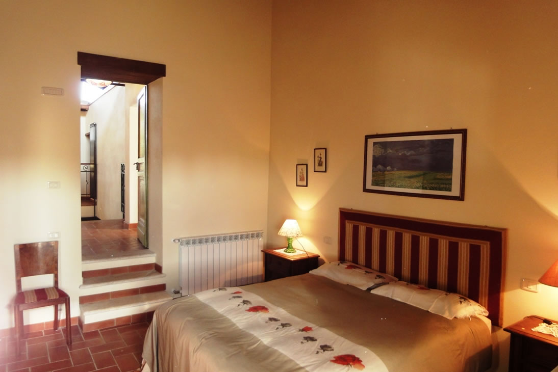 Dieses große Haus für 8/9 Personen, mit Schwimmbad, war eine alte Ziegelbrennerei. In der alten Tongrube befindet sich nun das Schwimmbad (6x12m, Tiefe 1,2 bis 1,8 m; offen vom erste Samstag im Mai bis zum erste Samstag im Oktober). Es liegt nur 5 km von Rapolano Terme entfernt. Nicht weit vom Haus entfernt liegt die Schnellstraße Siena-Bettolle, auf der man in 15 Min. Siena und in weniger als einer Stunde Florenz und Arezzo erreichen kann. Das Haus liegt zu Füßen eines Hügels und hat zwei Stockwerke, die jedoch infolge der Struktur des Hauses beide im Erdgeschoss liegen. Der Garten rundum der Villa ist eingezäunt, doch könnte ihr Hund trotzdem ausbuchsen. Im innern des Gartens können mehr als zwei Autos geparkt werden. Daneben befindet sich auch eine dreiseitige Garage mit zwei Plätzen. Ein schmiedeisernes Tor, von zwei Backsteinsäulen gehalten, ist der Eingang zum Garten. Vom Garten aus kommt man in eine große Küche und von da aus über zwei Treppenstufen in die Waschküche mit Waschmaschine, Geschirrspühler und einem separaten WC. Von der Küche aus, über einen Treppentritt und durch ein Backsteintor kommt man zu dem Teil, wo früher die Ton-Backsteine gebrannt wurden. Hier befinden sich ein Tisch mit Stühlen und zu Ihrer linken eine Treppe mit drei Stufen, die in die Schlafzimmer führen. Am Ende der Treppe kommt man in einen weiten Raum mit Sofas, Lehnstühlen und einem kleinen Kamin. Von hier aus führen zwei große Eingangstüren in den großen Garten zum Schwimmbad. Die „Nachtabteilung“ besteht aus drei Doppelschlafzimmern, alle mit integrierter Dusche. Das vierte Zimmer hat zwei Einzelbetten. In einem der drei Doppelschlafzimmer kann man ein drittes Bett stellen. In allen Zimmern hat es Klimaanlage (extra zahlbar pro Woche). In nur 350 m Entfernung befindet sich ein Restaurant. Einkaufszentren, Bäcker und andere Restaurants finden Sie in Rapolano Terme.