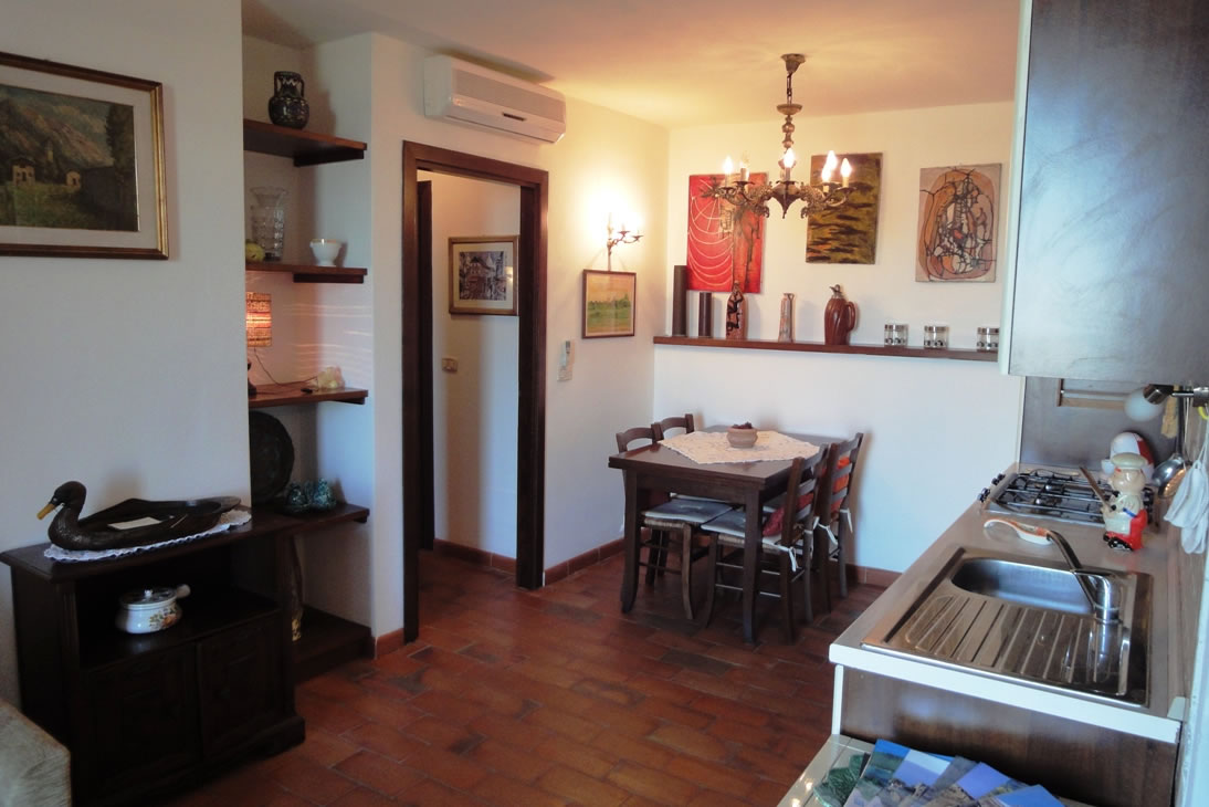 Auf dem höchsten Teil des alten Dorfes, nur wenige Meter vom Eingang der Burg von Castiglione della Pescaia entfernt, im Aussichtlage (man genießt den Blick auf die unterliegende Stadt, das Meer und den Pinienwald) liegt eine Gruppe Häuser , genannt „Il Borgo“. Diese Häuser waren einmal Teil des Klosters, das sich neben einer der zwei Kirchen mit Glockenturm befand. 5’ zu Fuß entfernt kommt man ins Dorf u. 10’ ans Meer. Restaurants, Pizzerias, Wine-Bars und Pubs befinden sich im alten Dorf weniger als 200 m entfernt. Es ist wirklich exklusiv ein Haus in dieser Gegend zu haben, wo man sich vom typischen Chaos einer Meeresstadt entfernen kann. Ein Spaziergang durch die kleinen Gassen des alten Dorfes (Via di Mezzo, Via delle Campane, Via del Recinto und Via dell’Amore) erfüllt mit Friede und Ruhe: es ist wie wenn die Zeit stehen geblieben wäre. Charakteristisch ist das Schlagen der halben (Mezze genannt) und der vollen Stunden des, gemeinsam mit der Burg, Stadtsymbol gewordenen Glockenturms. Im Sommer und während einiger Wochenenden wohnt der Besitzer in dem größeren Haus. Die drei Ferienwohnungen haben den Zugang auf der Straße, die zur Burg führt. Zwei Wohnungen haben einen eigenen Eingang mit Stiegen.