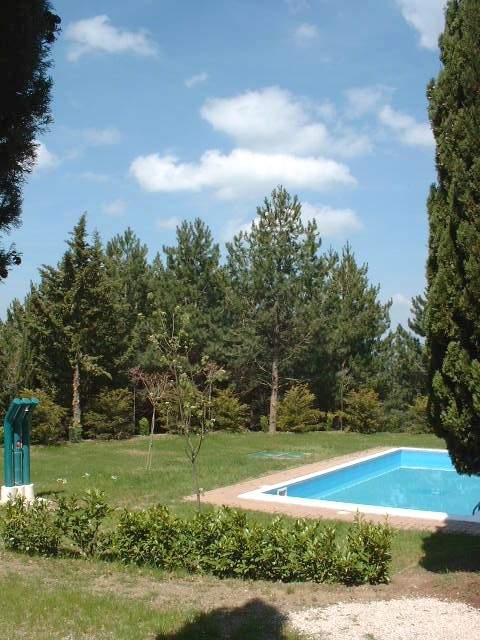 Das ehrwürdige, unter Denkmalschutz sehende Gebäude, wurde vor Jahren vom Besitzer mit viel Sachkenntnis und Feingefühl nach den alten Plänen wieder aufgebaut. Es war nur noch eine Ruine. Es wurde in drei grosszügige Wohnungen aufgeteilt. Jede hat einen separaten Zugang von aussen. Da das Haus am Hang liegt, ist es von drei Ebenen begehbar. Auch die Terrassen wurden so angelegt, dass jeder ungestört sein kann. Seitlich steht noch ein kleines Haus, ebenfalls mit eigenem Aussenbereich. Etwas tiefer versetzt auf dem Grundstück, eingebettet in Grün, wartet auf die Gäste ein Pool (5x10 m). In einiger Entfernung, damit sich niemand gestört fühlt, ist ein eigener Tennisplatz. Hier finden Sie Luxus, zugleich auch Gemütlichkeit. Die Atmosphäre garantiert einen unvergesslichen Urlaub. Das 7 ha grosse Grundstück ist mit einem Tor verschlossen. Etwas abseits steht ein kleines Kirchlein - la Chiesina - , das diesem Gelände den Namen gab. Das Haupthaus war in alten Zeiten ein Zollhaus. Hier entlang gingen die Salzlieferungen vom Meer in den Norden. Im Laufe der Zeit fand man bequemere Wege. So geriet die beschwerliche Strasse über die Berge in Vergessenheit und auch das Zollhaus. Übrigens wird erzählt und in alten Büchern über Arcidosso erwähnt, dass hier ein Schatz vergraben sein soll. Bei den Bauarbeiten kam er allerdings nicht zum Vorschein...